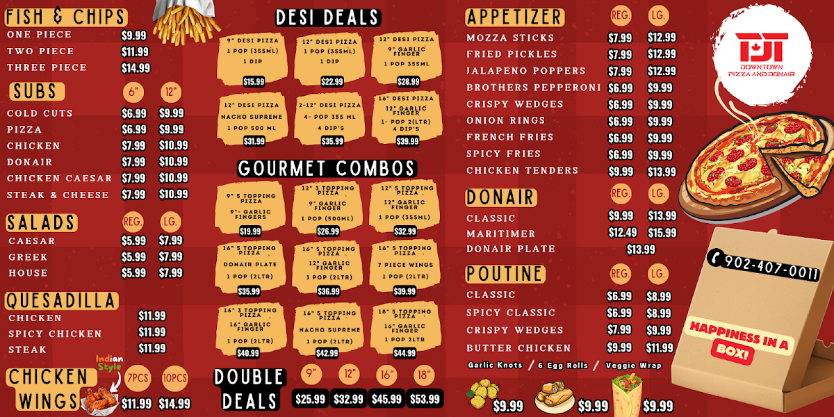 Beyond traditional pies, Downtown Pizza also excels in other hearty offerings. Guests can indulge in classic Donairs, mouthwatering chicken wings, and innovative specialties like the Paneer Tikka Pizza, crafted with precision and rich flavors. The ambiance is welcoming, with attentive staff ready to enhance your dining experience.